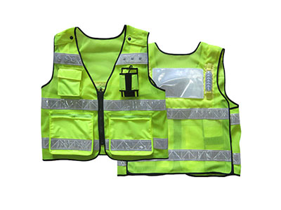 采用尼龍熒光黃(綠)不易變形起皺,細網眼設計,通透性好,穿戴舒適,面料主色為熒光黃,顏色美觀,并有一定的視覺警示作用。雙燈前后顯示,紅藍爆閃白光常亮,LED電子發(fā)光二極管燈珠,紅藍爆閃效果夜間距離≥500米;
