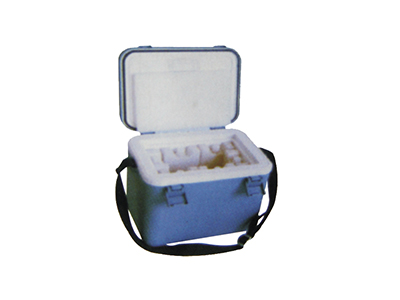 • 該產品用于儲存和運輸各種生物檢材。箱體為聚乙烯材料制成,隔熱層采用聚氨酯發泡材料,箱口有塑膠密封條。箱體內有6只冰排貼箱體內壁圍成一圈,檢材放置在冰排圍成的空區內。