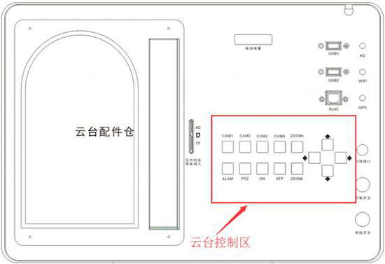 按鈕式,支持上下左右變倍變焦,紅色方形按鈕 |