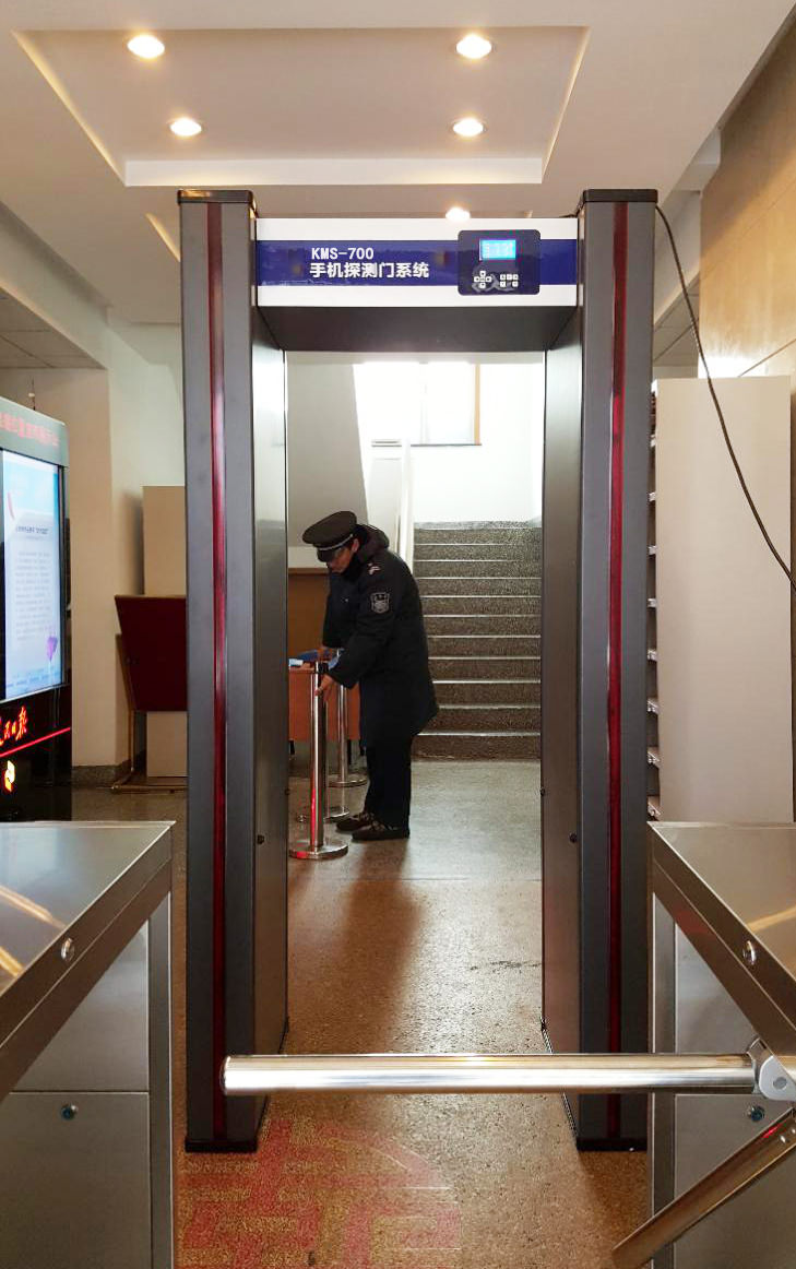 手機探測門設備安裝在涉密會議室、指揮室位置,用于檢測進入涉密區域人員,可探測人體是否攜帶處于開機或者關機狀態(含移除電池、移除卡的手機、筆記本、iPad、相機等電子產品,并能進行位置聲光報警;手機用銅箔包裹5層也可報警;可排除扣子、拉鏈、手表、鑰匙、皮帶扣等物品不產生誤報。